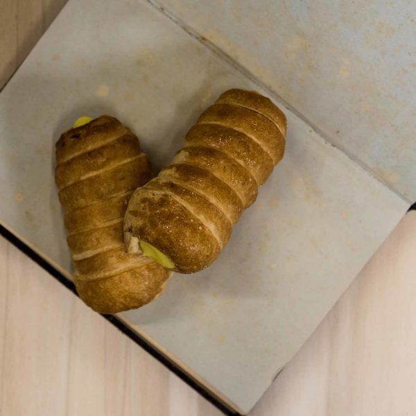 Farina di frumento, margarina, zucchero, sale, aromi. Farcitura: crema.