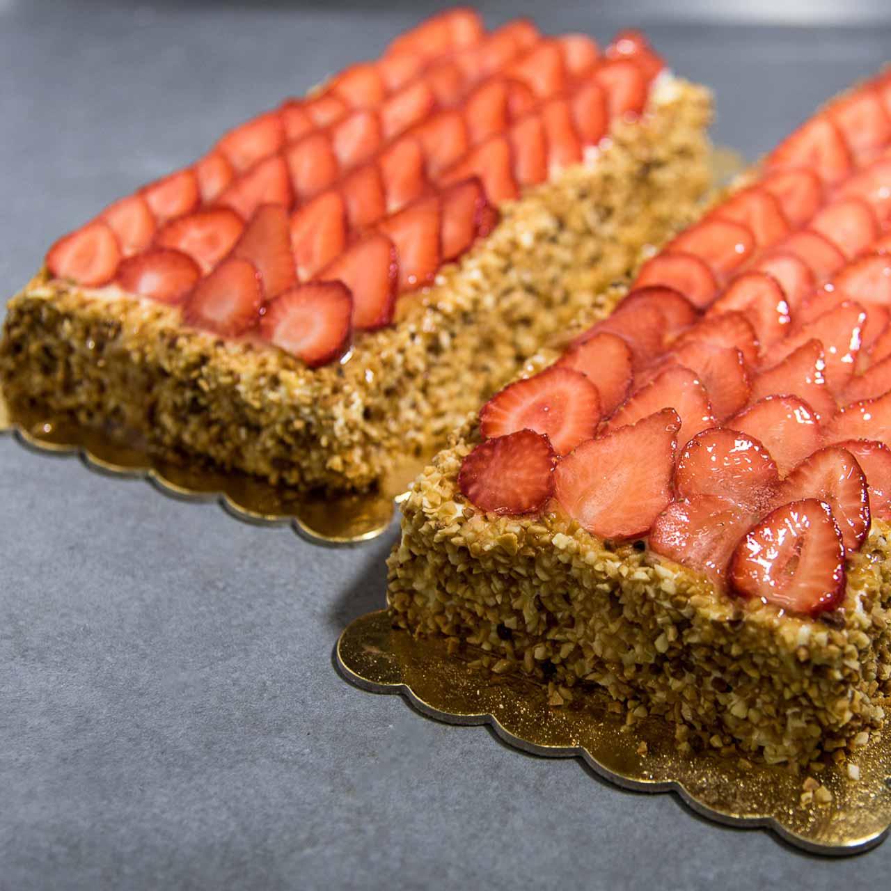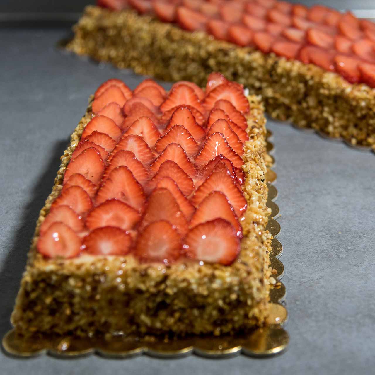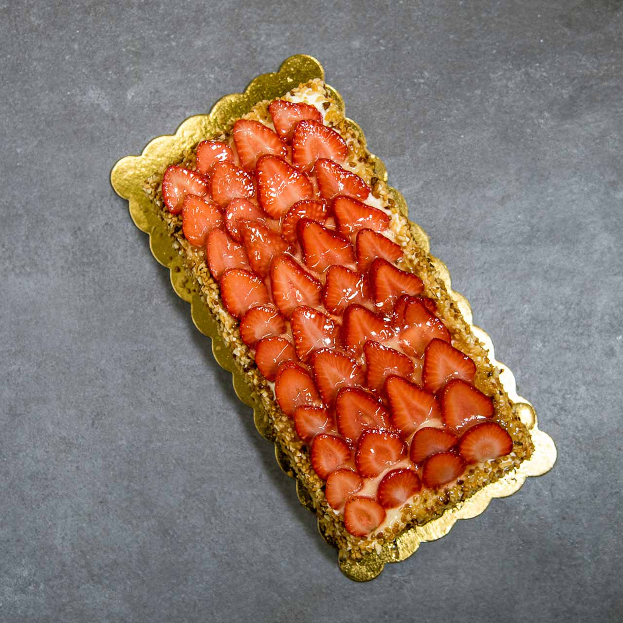 Farcitura: crema chantilly (panna e crema), fragole, granella di arachidi e gelatina.