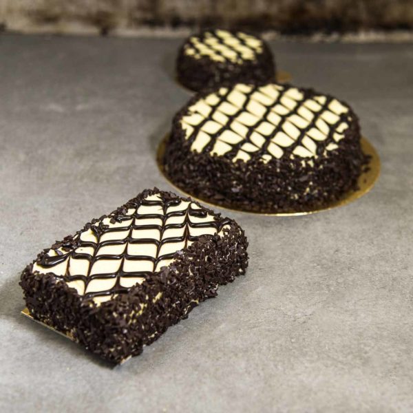 Farcitura: chema chantilly (panna e crema), crema al cacao, scaglie di cioccolato.